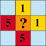 The temperature of a cell is one-quarter the sum of the temperatures of the four nearest neighbors.For our example this gives the temperature of the middle cell as