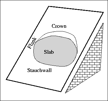 Weak Layer: Shear failure between slab and bed surface Likely initialization Crown: Tensile failure Crown perpendicular to the bed surface Flank: Mixture of tensile and shear failure Stauchwall: Compression failure Slab rides up on snow layer